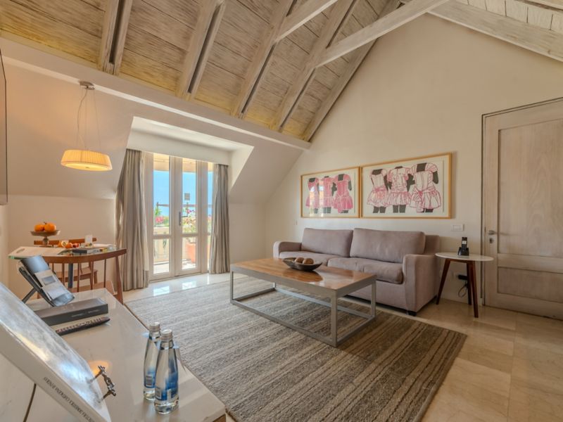 JUNIOR-SUITE - Kingsize-Bett, Wohnzimmer, hohe Etage, Balkon mit Meerblick, Majordome