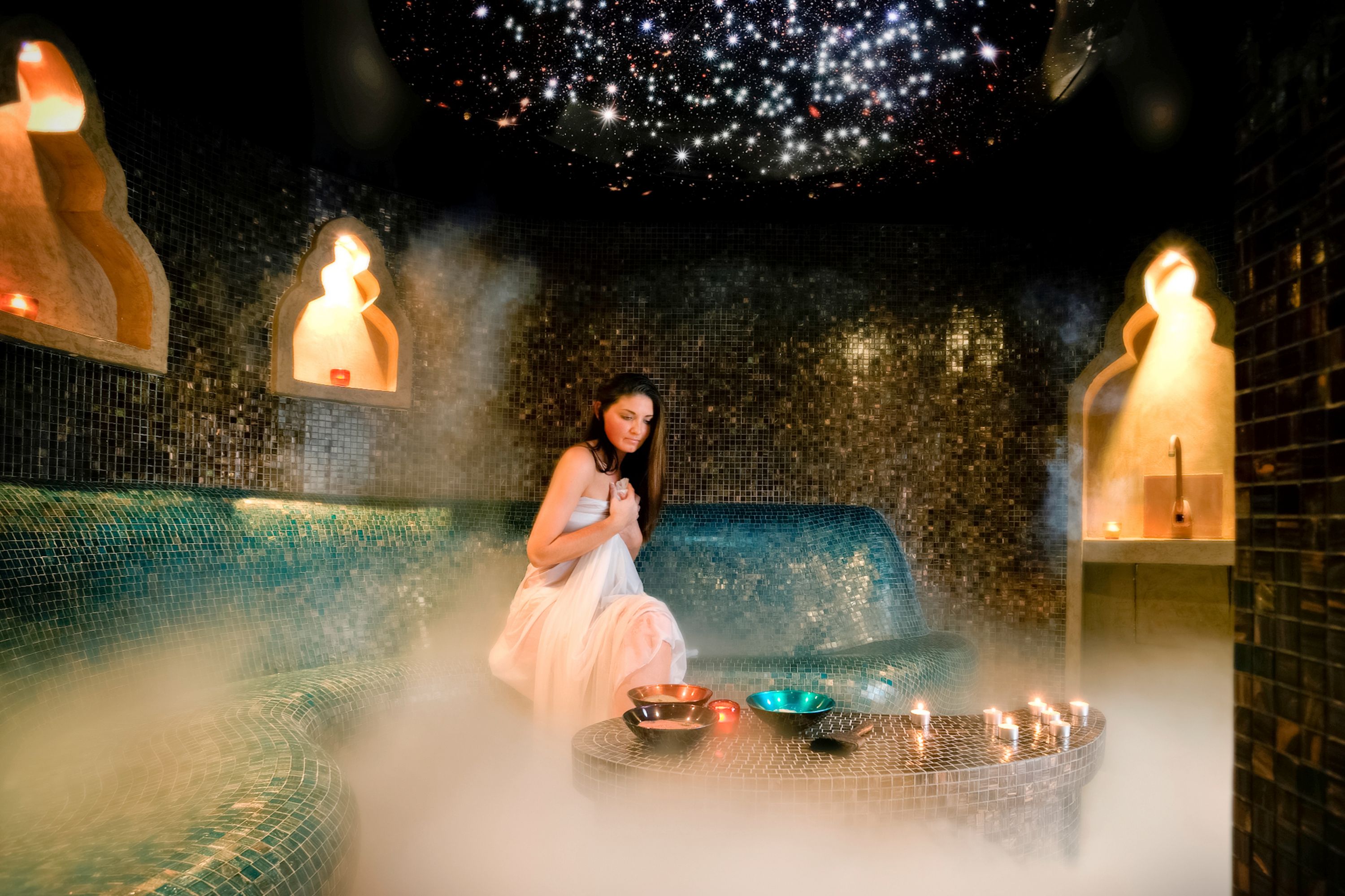 Entspannen Sie sich unter funkelnden Sternen bei dezenter Beleuchtung und warmem Nebel. Der Opal Rasul Steam Temple bietet einen einzigartigen Rückzugsort für bis zu drei Personen, in dem sie Körper und Geist mit mineralischen Schlammmasken ins Gleichgewicht bringen. Fügen Sie eine Immersion Bath Therapy hinzu und ergänzen Sie Ihre einstündige Spa-Behandlung mit den kraftvollen und wohltuenden Effekten des Wassers. Ein herrlicher Duft umhüllt Sie, während Sie in einer Steinwanne im französischen Stil baden.