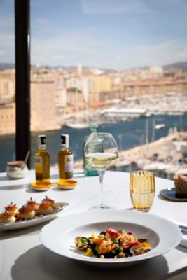 Generous, colourful and flavoursome. Discover the quintessence of Mediterranean cuisine at our gastronomic restaurant and chic brasserie, or sip a signature cocktail at our rooftop bar, all to a backdrop of panoramic views over the Old Port.