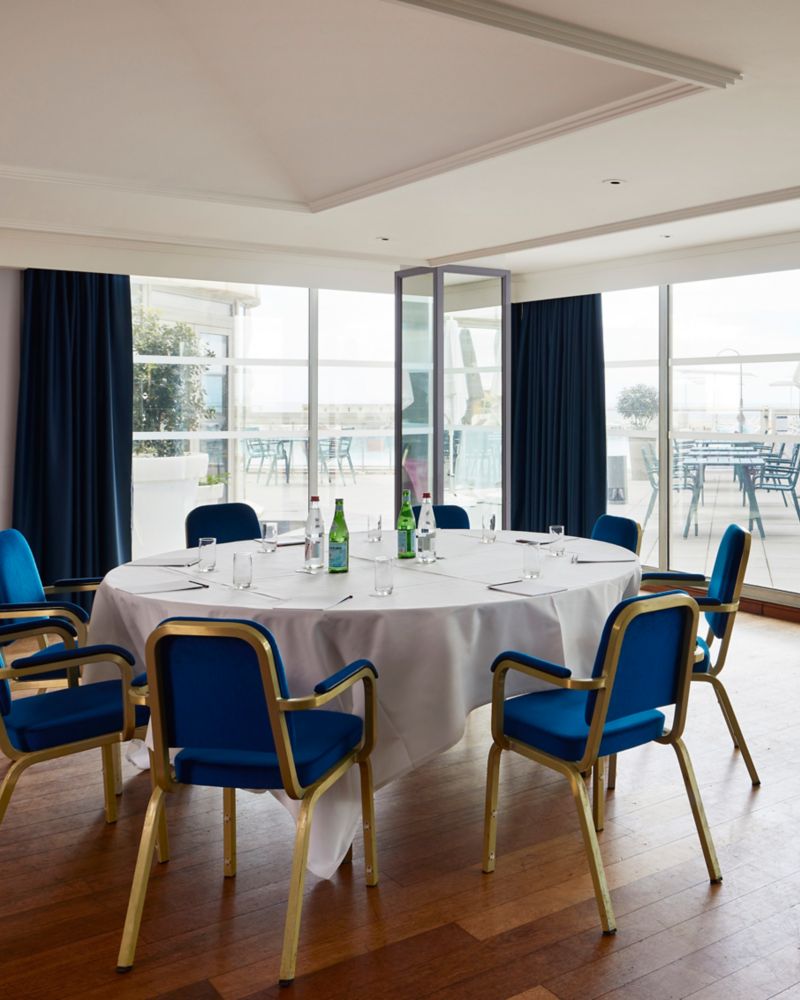 Organise your business meeting or lunch for up to 19 guests in this more intimate space overlooking the ocean, equipped with technical facilities and screen feedback.