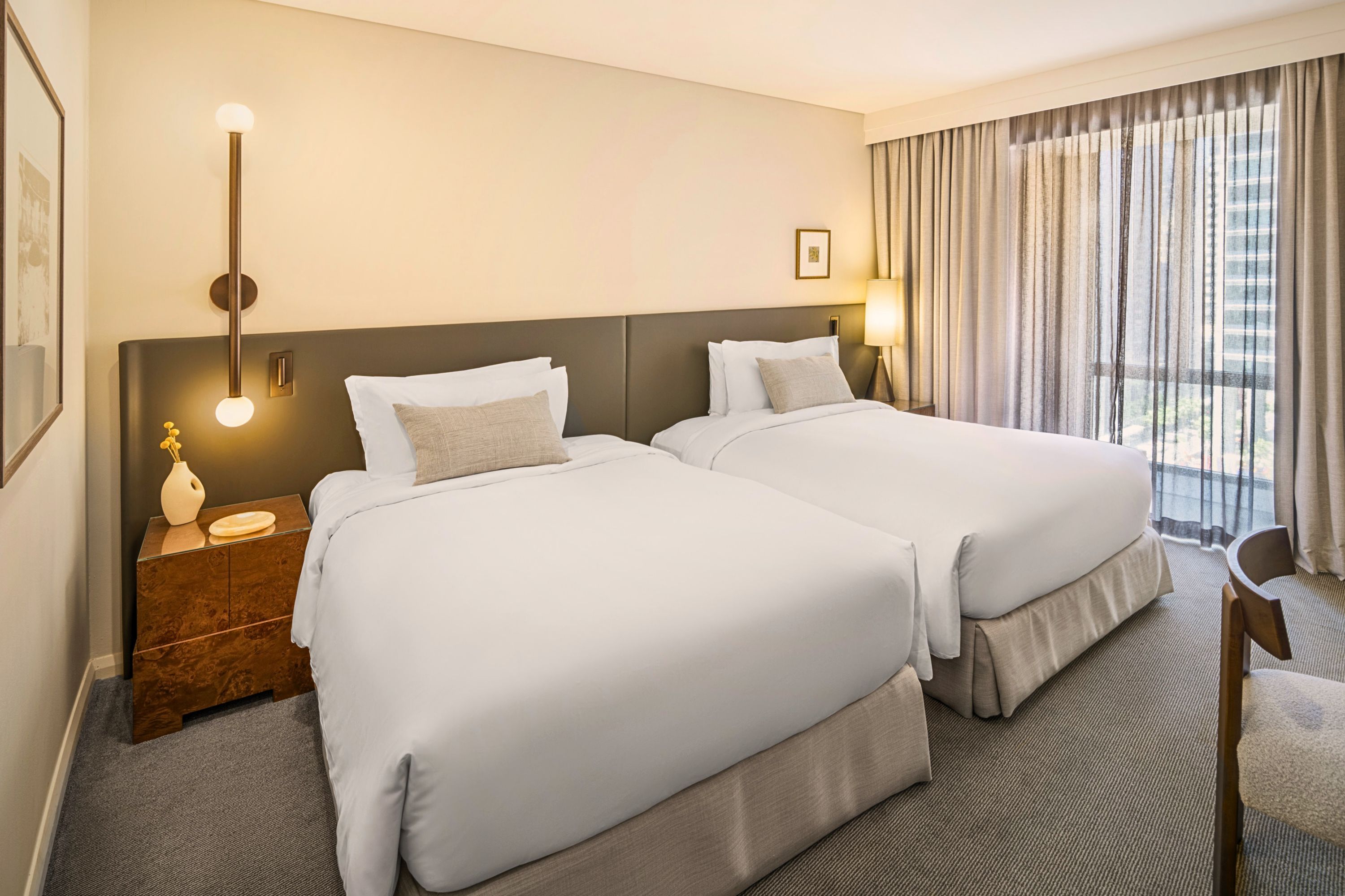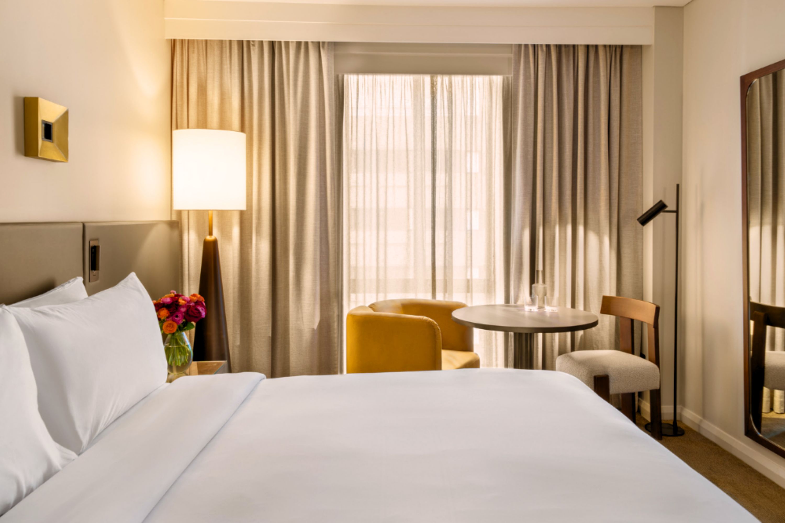 The rooms and suites at Sofitel Sydney Wentworth offer an oasis of comfort and luxury. Spanning 17 levels, with 391 rooms and 45 suites, each space is thoughtfully appointed. Guests can enjoy Sofitel MY BED alongside Balmain Paris bathroom amenities, ensuring a refined and relaxing experience for every stay.