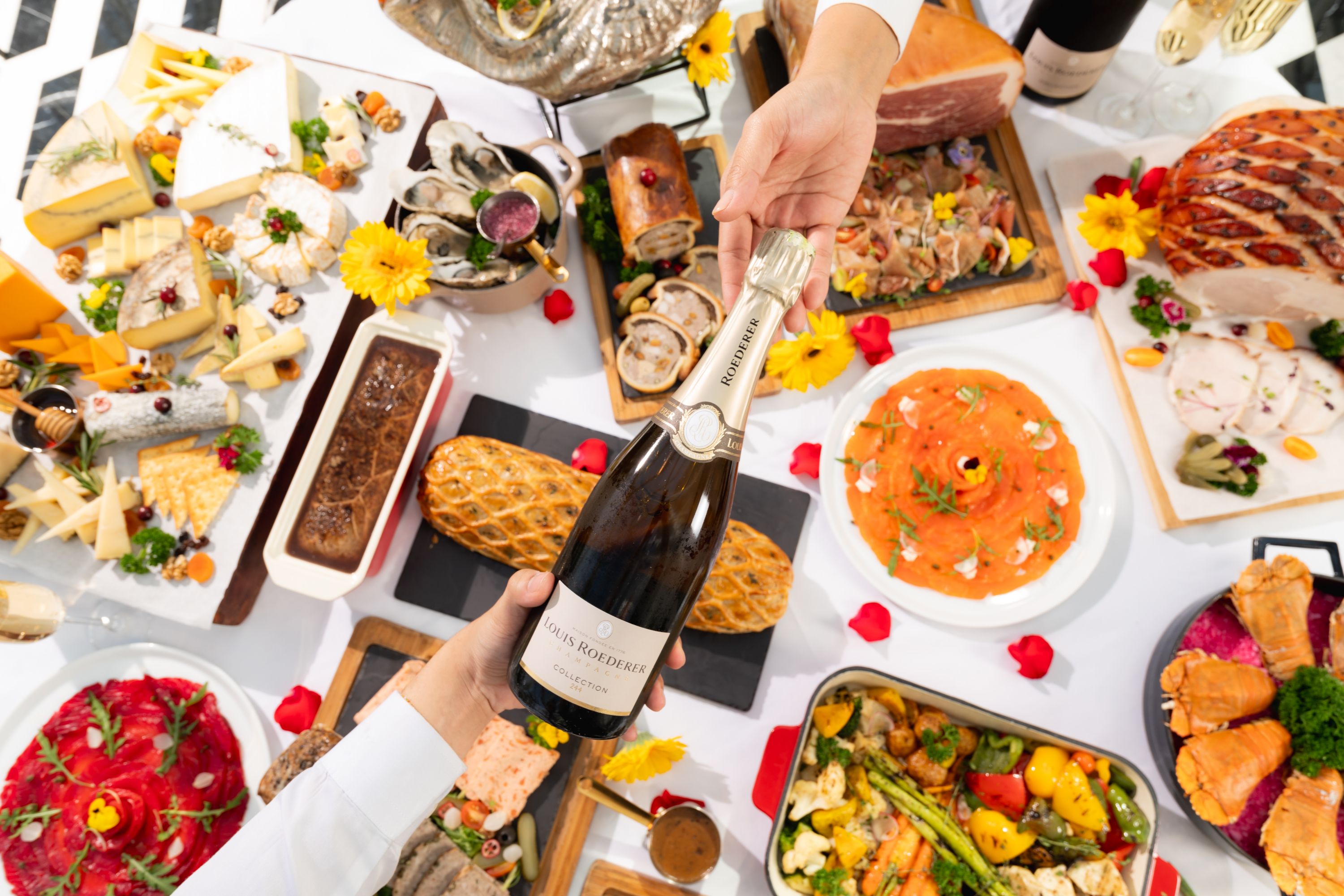 Join us for an incredible brunch every Sunday from 11:30am to 2:30pm, where you'll be spoiled for choice with a sprawling buffet of lobster, foie gras, French oysters, Hokkaido scallops, housemade ice cream, and more! Louis Roederer champagne is available and access to the swimming pool.