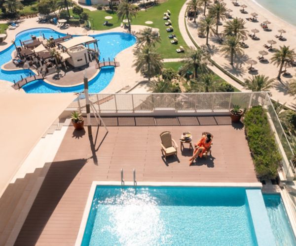Sumptuous suites and palatial retreats: find your home away from home at our luxury Bahrain hotel. Gorgeous Arabian design with French influences. Balcony rooms overlooking the sea. Your very own rooftop infinity pool and al fresco lounge. It's all yours at our beachside hotel.
