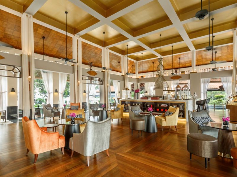 Located at the heart of the hotel, LeBar is an outdoor pavilion lounge surrounded by lush greenery and offering views of the South China Sea — perfect for relaxing afternoons, casual catch-ups, and enjoying themed afternoon teas and cocktails.