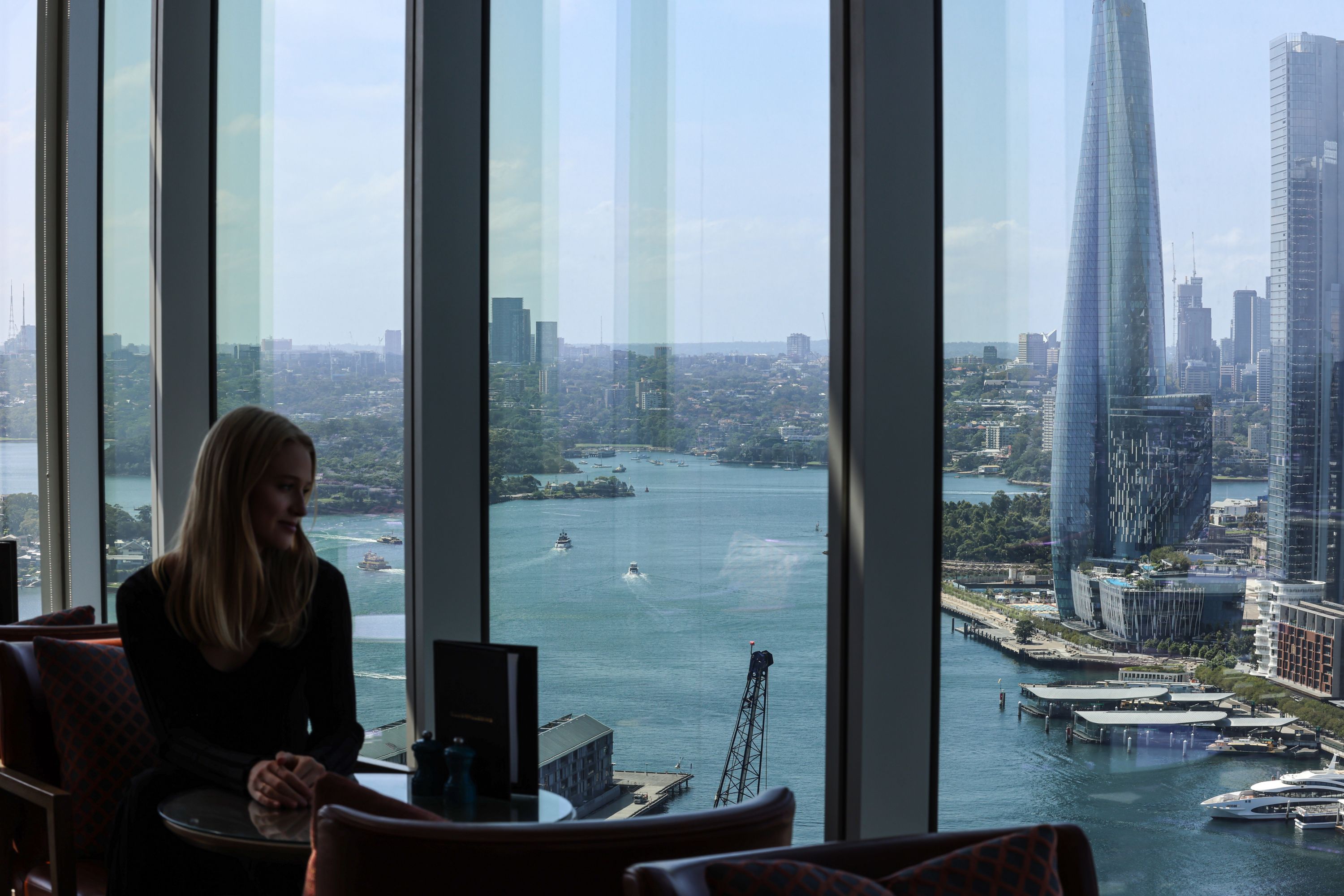 Guests are invited to enjoy a curated selection of refreshments served throughout the day, from morning coffee to evening drinks, all within a sophisticated lounge atmosphere high above the harbour.