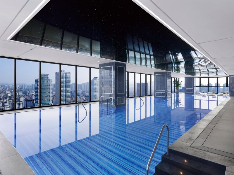Yes, we have an indoor swimming pool on the 16th floor, 25 m long and 1.2 m deep, with floor-to-ceiling windows offering remarkable views of Seokchon Lake. Additionally, there is a kids' pool and an outdoor whirlpool.