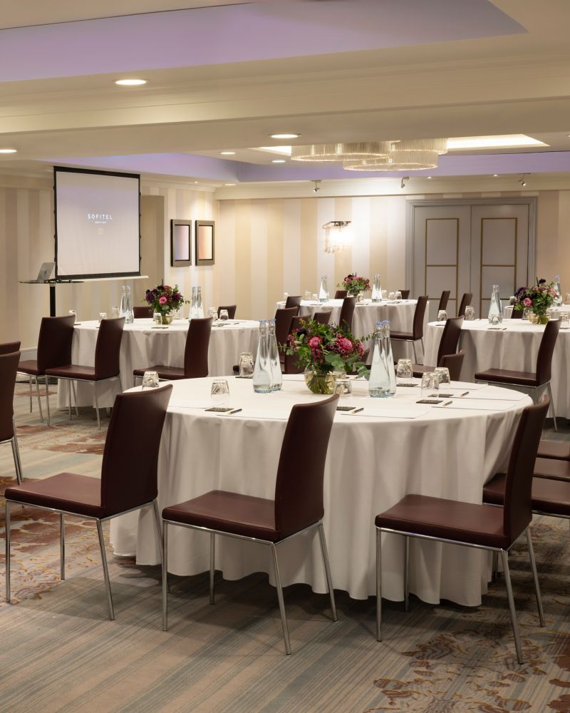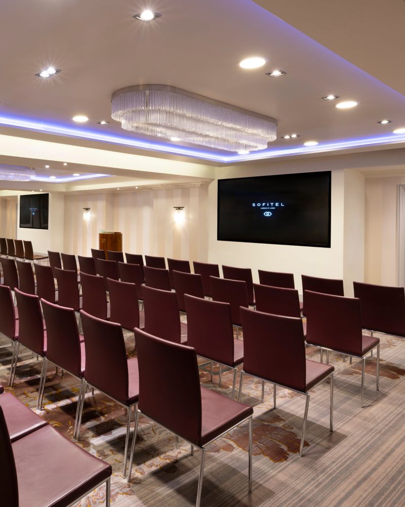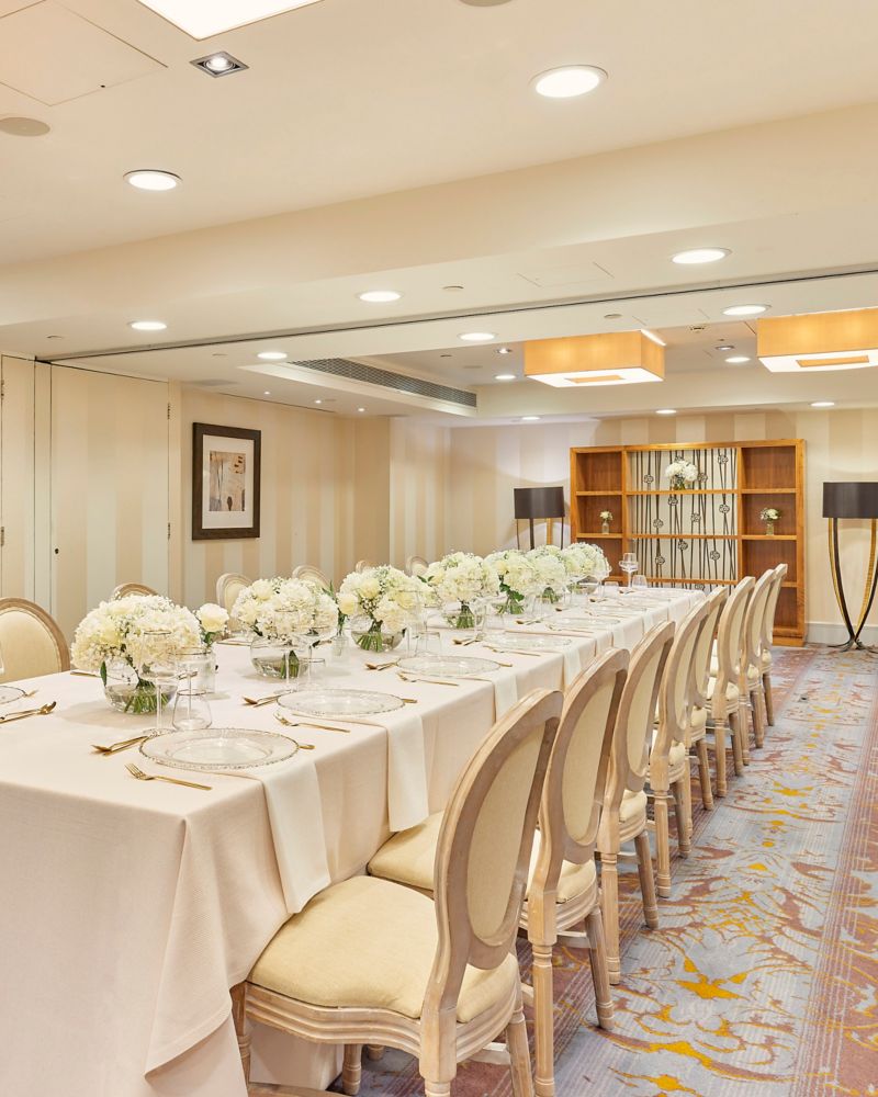 Con una paleta de colores cálidos que evoca una sensación de calma y suavidad, la suite Mayfair es perfecta para eventos sociales o profesionales. Con capacidad para 132 personas y puede dividirse en dos.