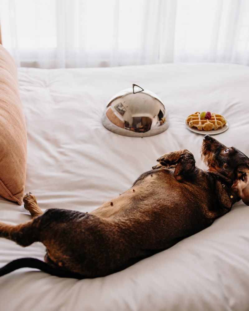 En su habitación, una cómoda cama o una tienda y elegantes tazones dan la bienvenida a su compañero. Estos atentos detalles y servicios personalizados están diseñados para que su mascota se sienta como un verdadero huésped VIP.