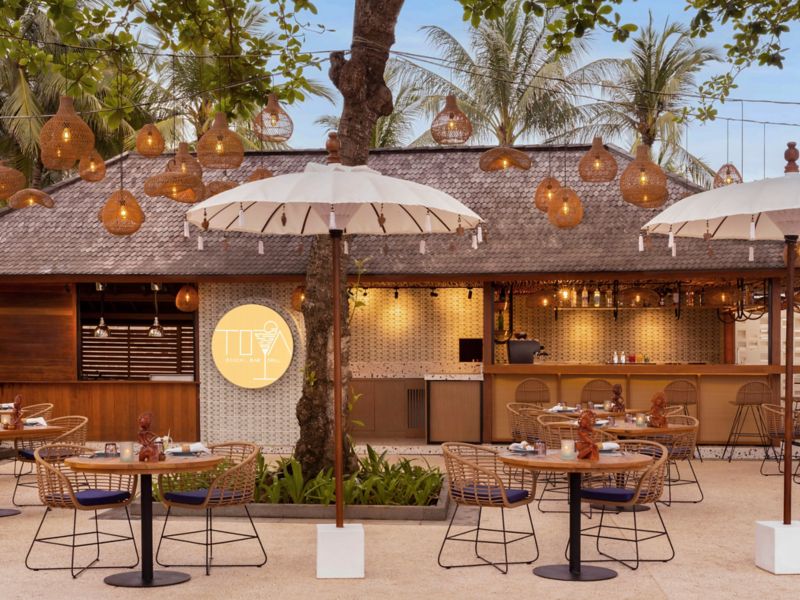 Cene, beba y descubra. Nuestro equipo culinario lo invita a los tres aclamados restaurantes de nuestro resort de 5 estrellas de Bali: Cucina, Kwee Zeen y Toya Beach Bar & Grill. Deléitese con bebidas de primera calidad en L'OH Pool Bar y Le Bar. Manarai Beach House ofrece comidas y bebidas excelentes y vistas prístinas al mar.