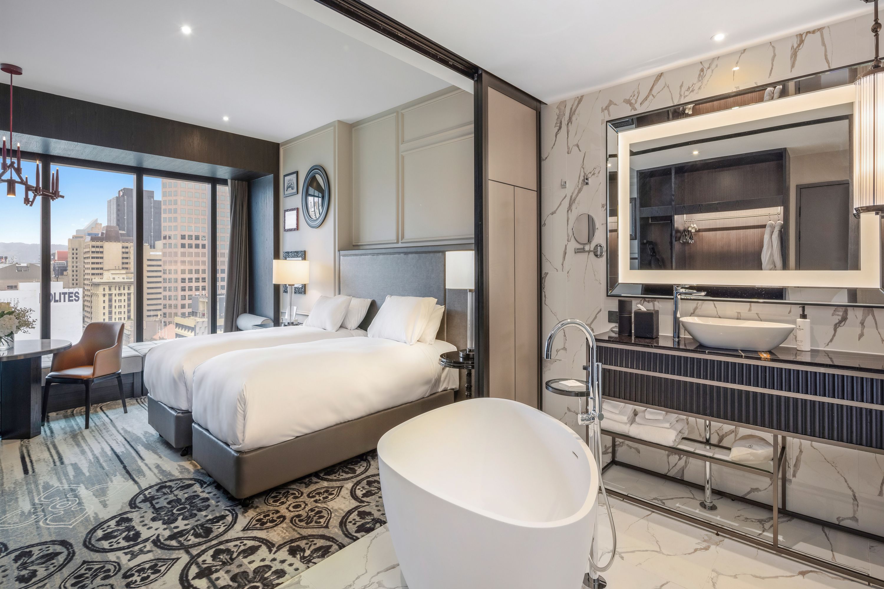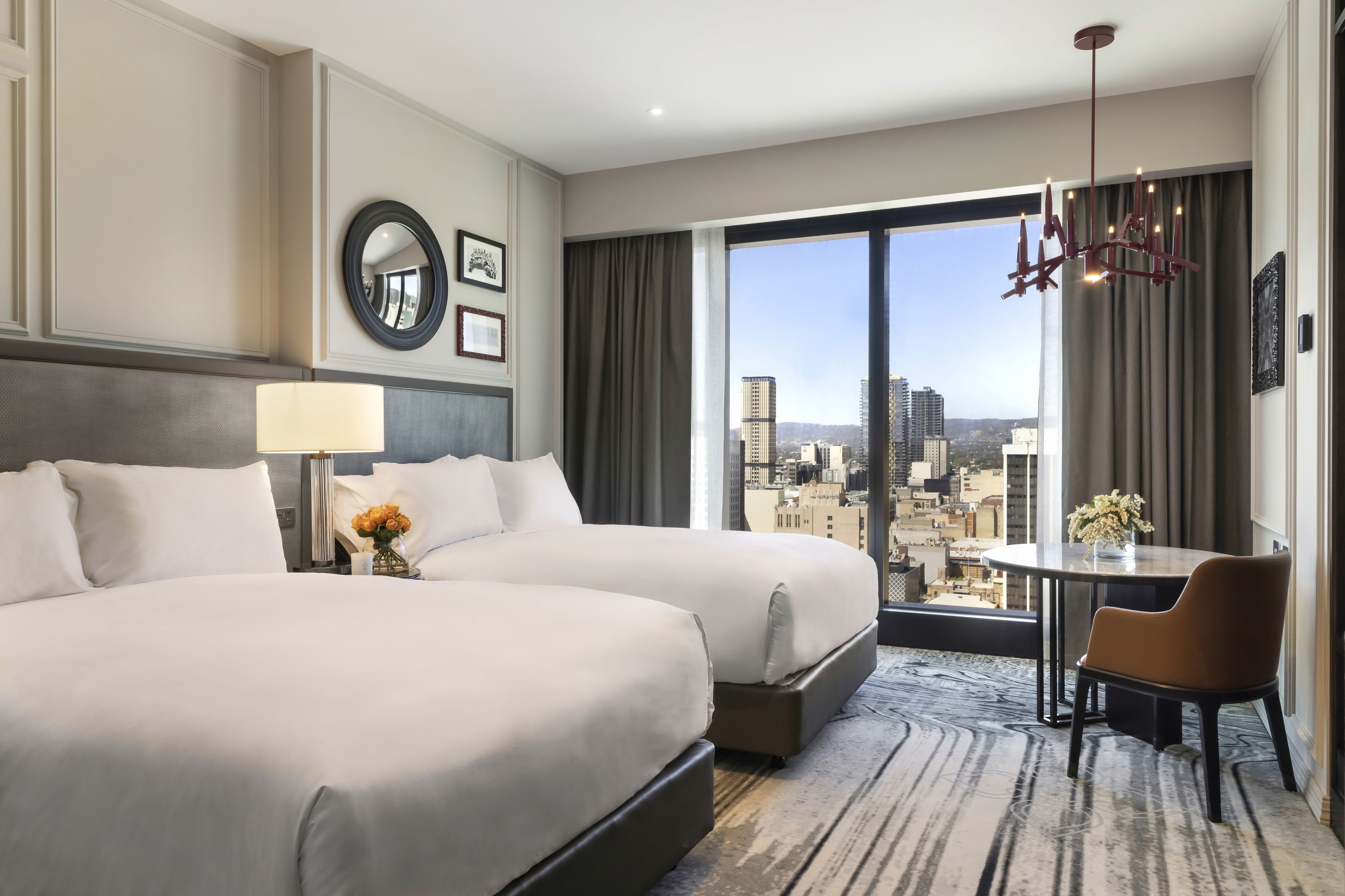 Imagínese un diseño francés bellamente contrastado con ventanales del piso al techo que ofrecen vistas espectaculares de Adelaida. Cada mañana, despierte en su elegante habitación con las mejores comodidades y una sensación de estar en casa. Las suites aquí son suntuosas y amplias, perfectas para estadías refinadas en el distrito financiero.