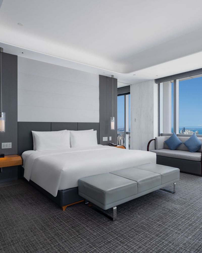 CHAMBRE LUXURY CLUB avec un lit king size, vue sur la ville et accès au Club Millésime