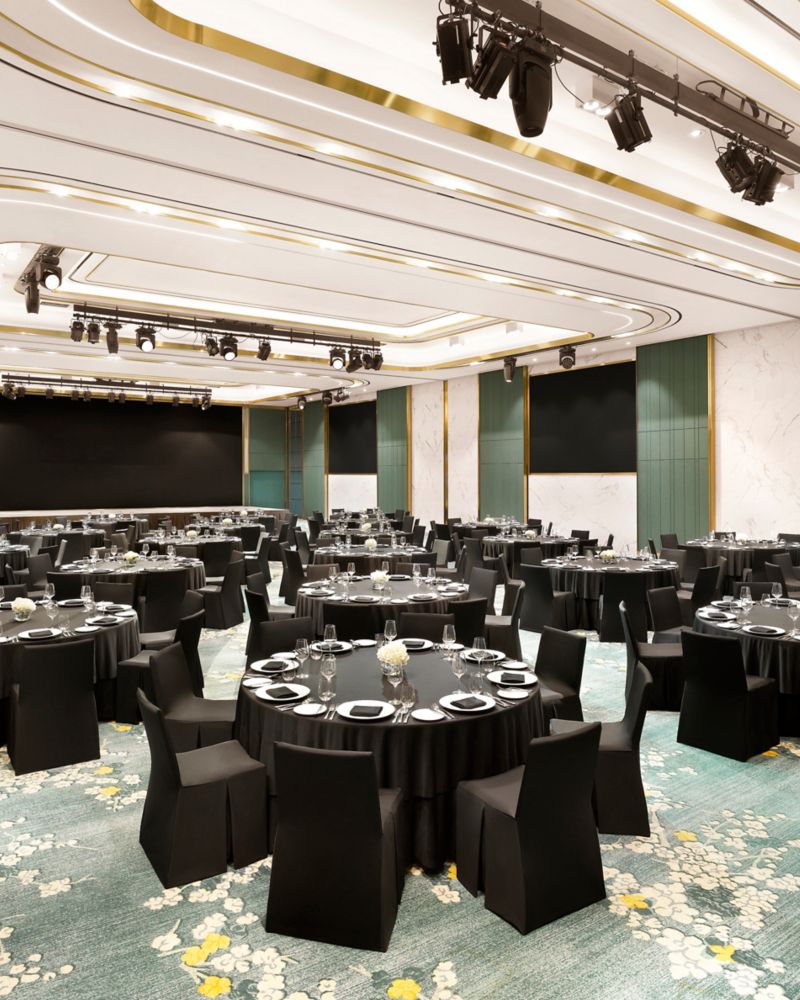 Alti soffitti dorati. Lussuose pareti con marmo e specchi. Lampadari scintillanti. Il nostro Grand Ballroom Vendôme è una cornice squisita per matrimoni o feste aziendali.