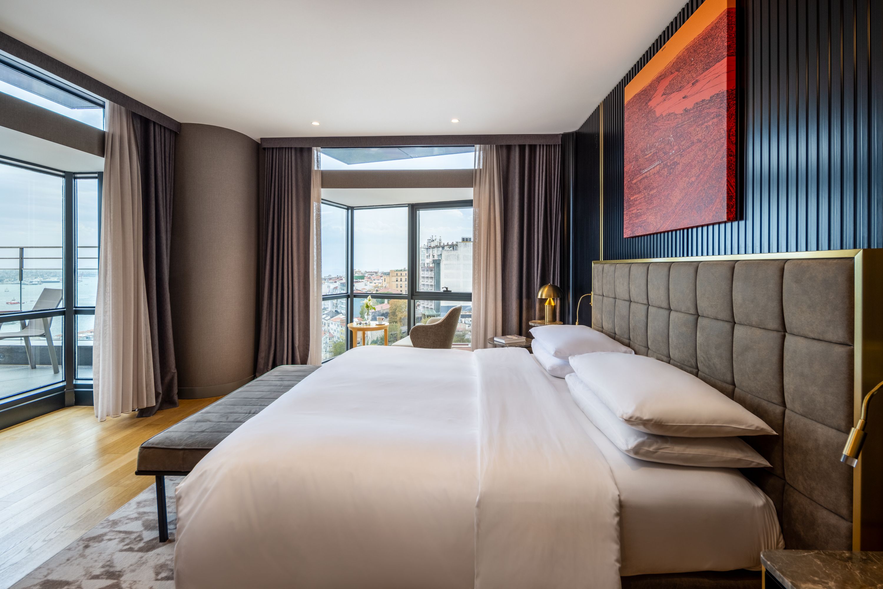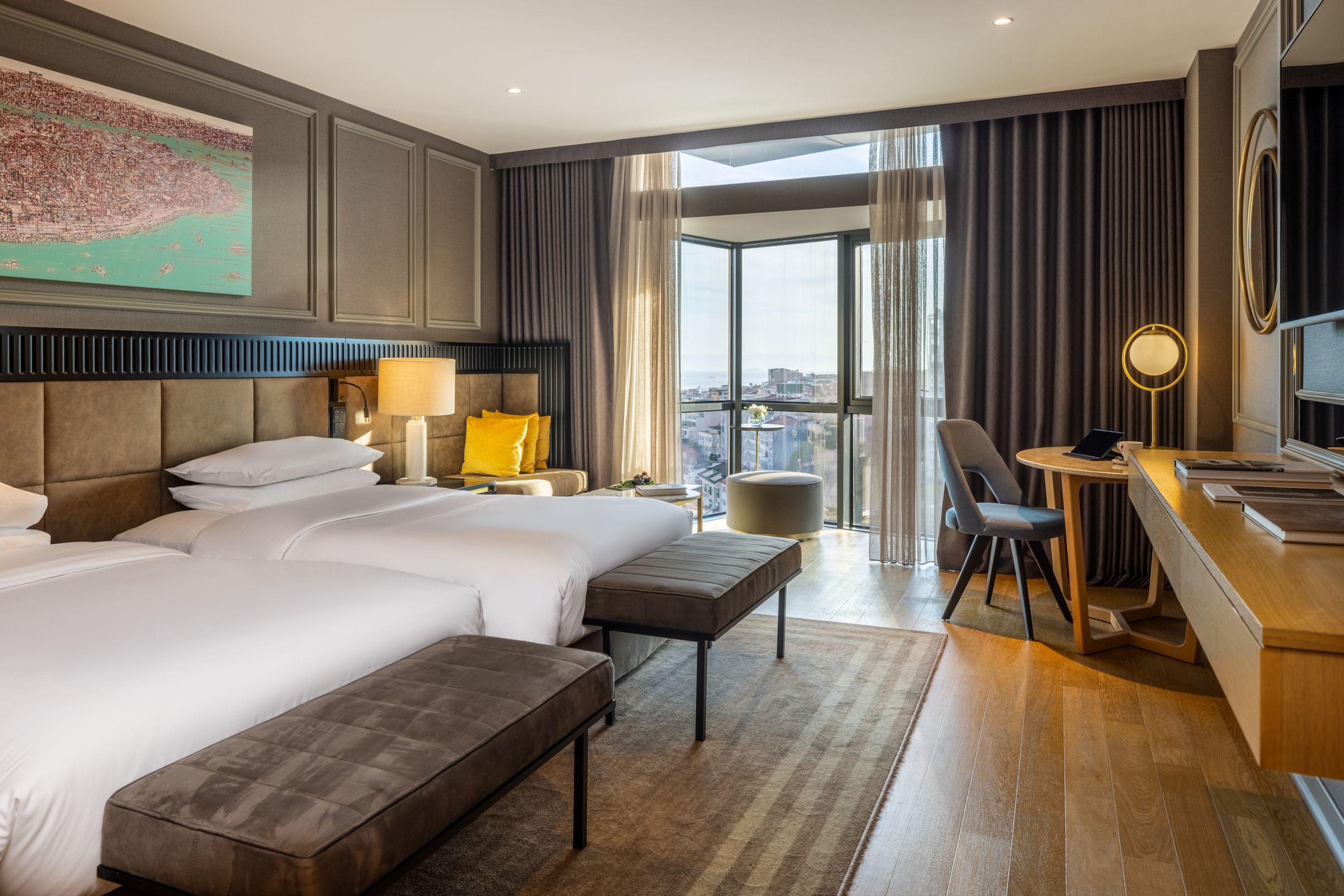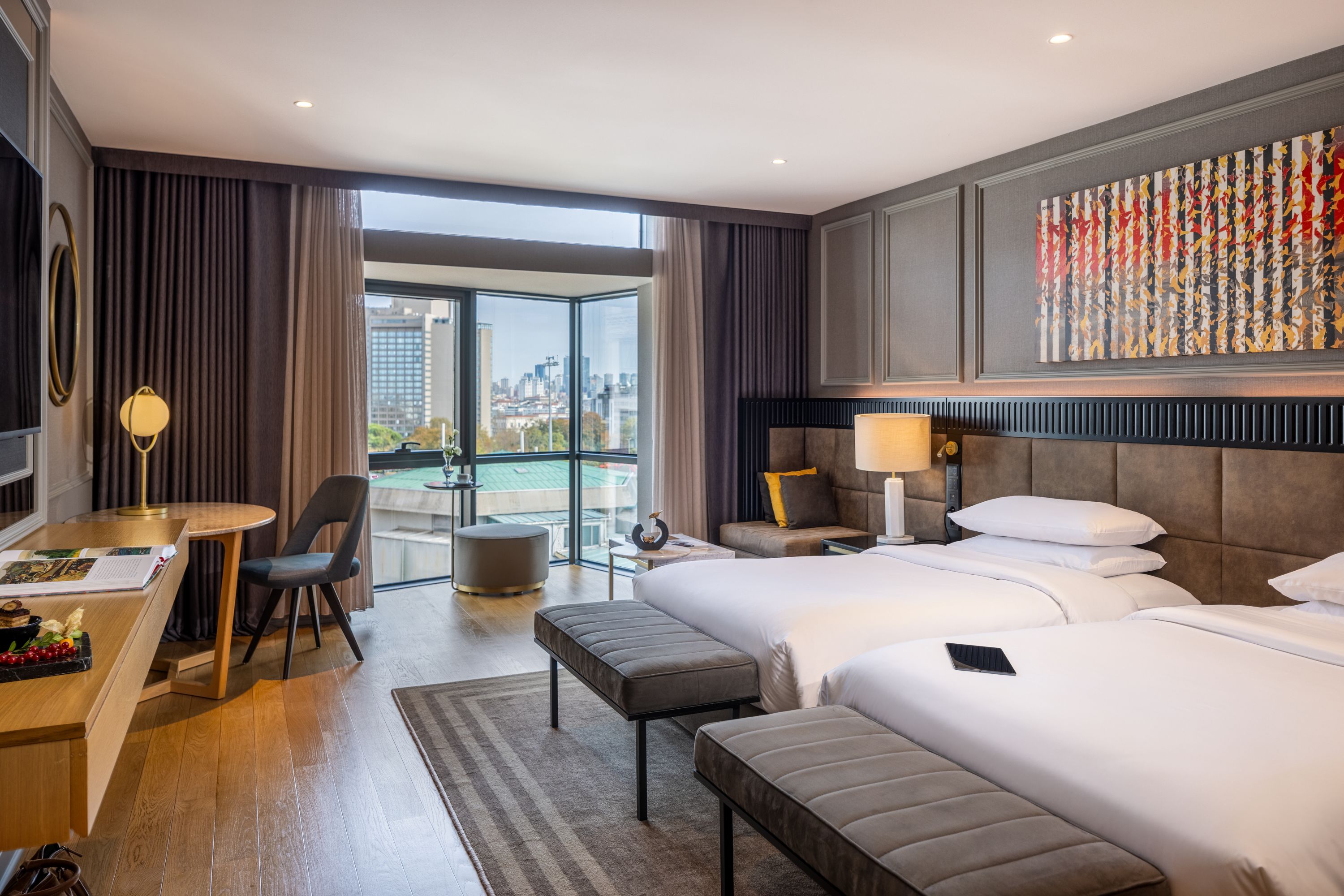 Le nostre eleganti camere e suite ti danno il benvenuto con mobili eleganti e contemporanei, bagni in marmo e tutte le ultime tecnologie. I delicati motivi turchi includono dipinti dell’artista Devrim Erbil, mentre le finestre a tutta altezza offrono panorami del Bosforo, di Viale Istiklal e del paesaggio urbano di Istanbul.