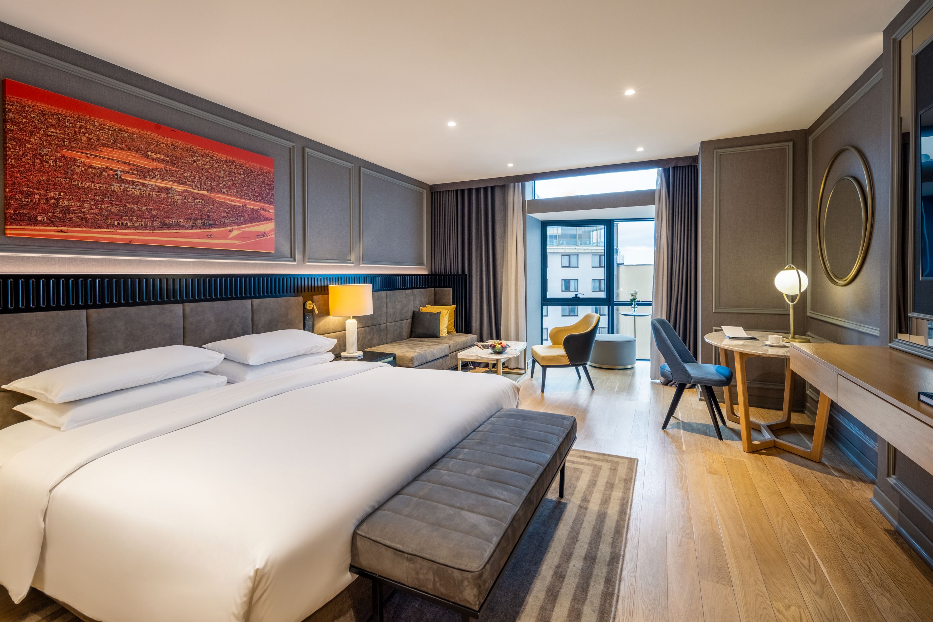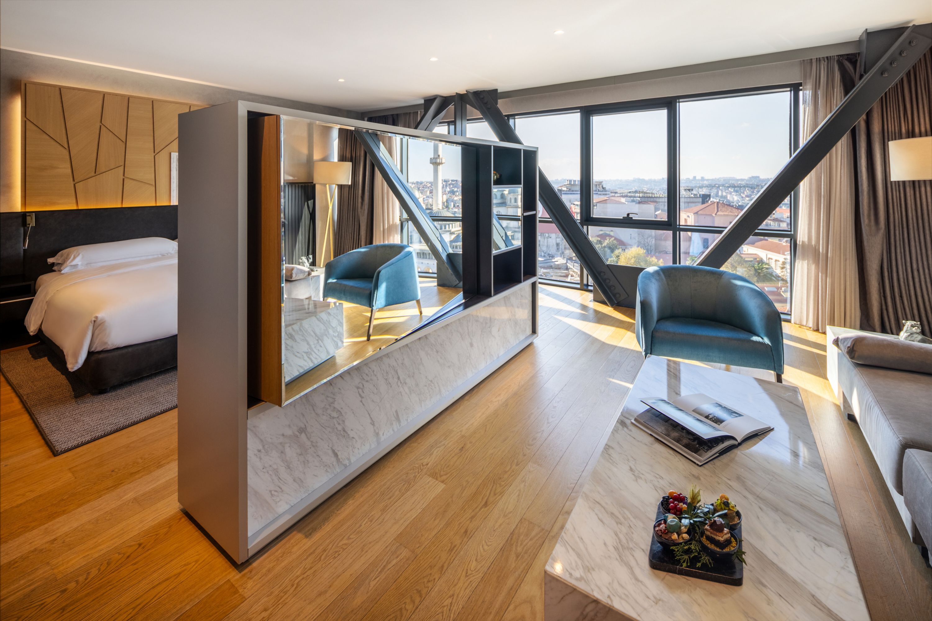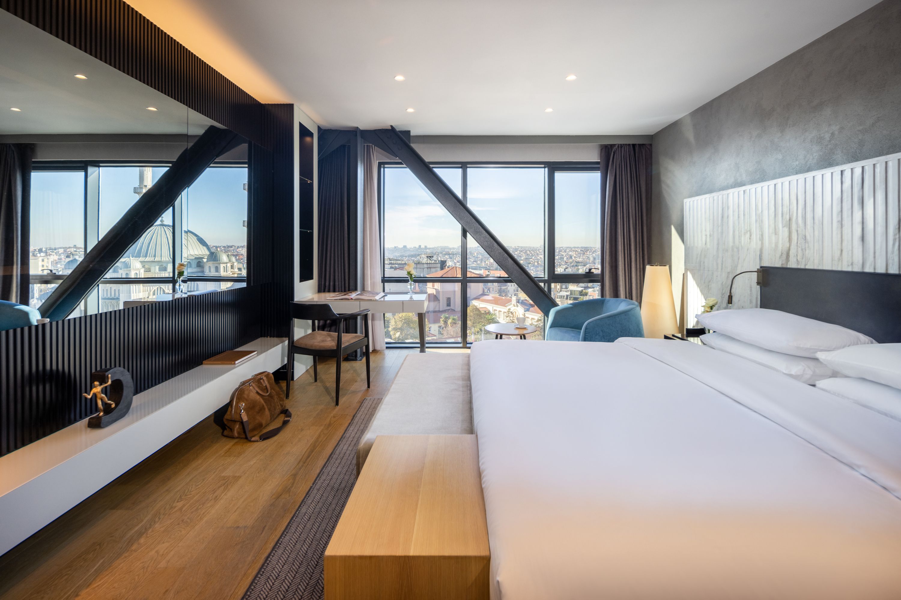 Le nostre eleganti camere e suite ti danno il benvenuto con mobili eleganti e contemporanei, bagni in marmo e tutte le ultime tecnologie. I delicati motivi turchi includono dipinti dell’artista Devrim Erbil, mentre le finestre a tutta altezza offrono panorami del Bosforo, di Viale Istiklal e del paesaggio urbano di Istanbul.