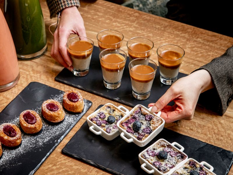 Saboreie nosso chocolate quente exclusivo ou um chá da nossa seleção, harmonizado com um doce delicado feito por nossa chef confeiteira, Shereen Khelif.