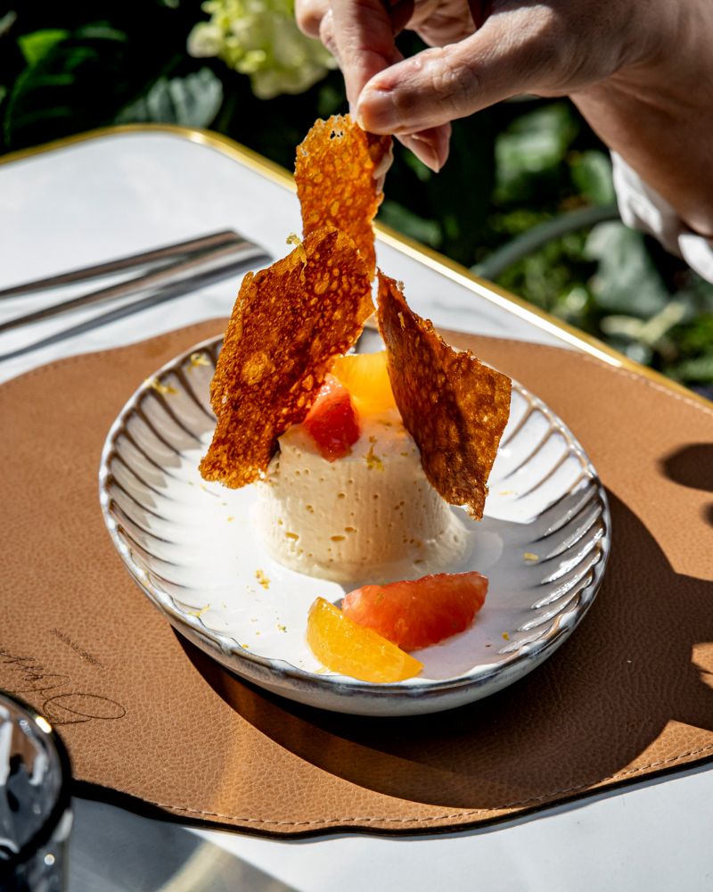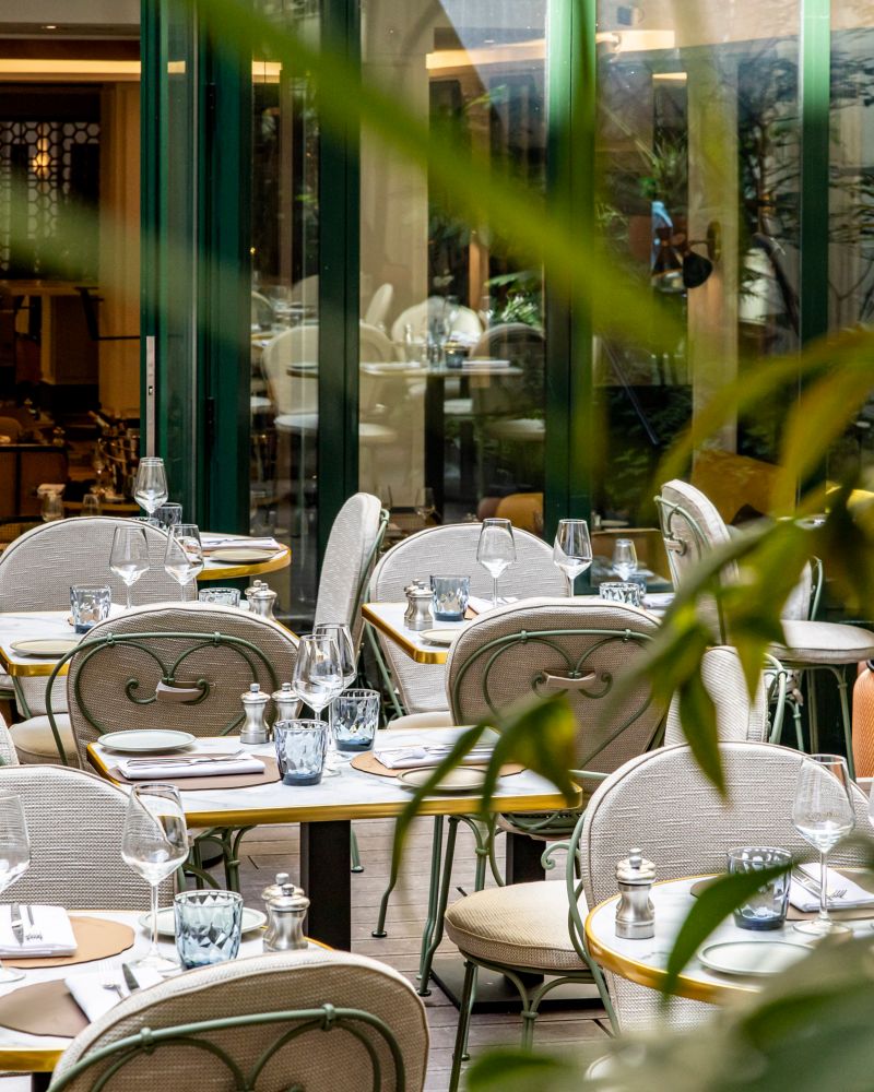 O pátio, um refúgio verde intimista, torna-se o destino definitivo quando o sol enfeita a cidade, uma joia escondida onde moradores e visitantes se reúnem em um banquete francês atemporal. Durante o dia, oferece um refúgio ensolarado e, à noite, seu charme é encantador e sereno. Seja em ambientes fechados ou ao ar livre, Maison Blossom é um lugar para se reunir, ficar mais tempo e celebrar, em que cada mesa conta uma história de prazer e socialização.