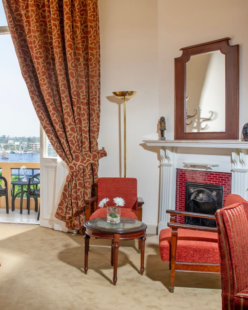 Quarto de 148 m² com 1 cama King Size e cama extra, sala de estar, sala de jantar, serviço de mordomo, vista panorâmica do Nilo, varanda, ecrã de plasma, WIFI, Internet de alta velocidade, minibar, cofre, casa de banho com chuveiro