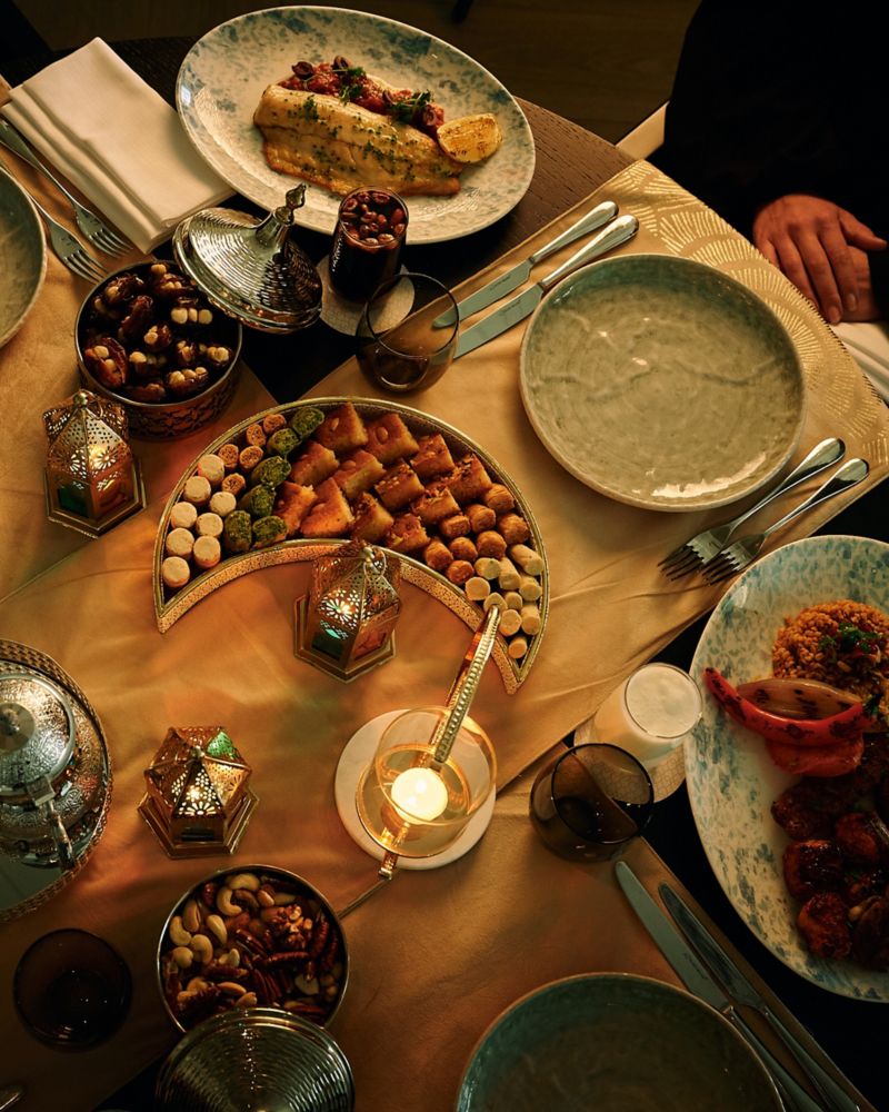 Acreditamos que o café da manhã é uma oportunidade para celebrar as tradições culinárias de todos os nossos hóspedes. Por esse motivo, oferecemos favoritos árabes, continentais e do leste europeu, além de especialidades asiáticas e guloseimas inesperadas. Desde viennoiserie, pães saj recheados e shakshuka até ovos Benedict, convidamos você a experimentar os sabores do mundo no café da manhã conosco.