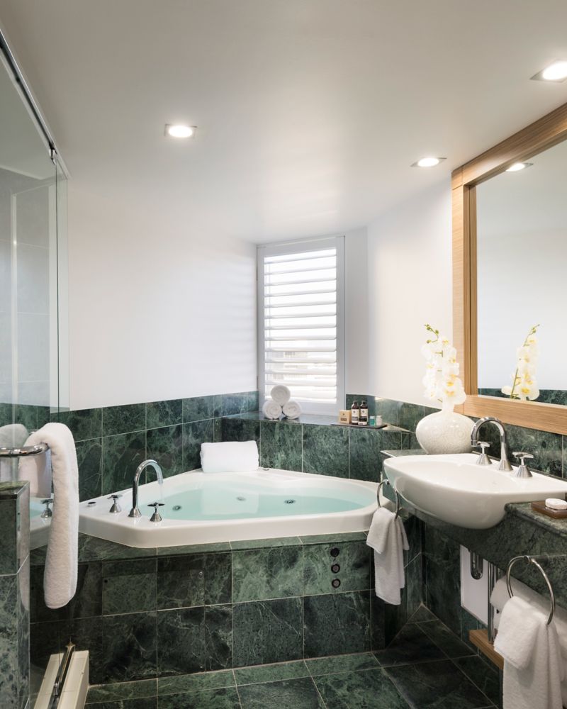 尊享套房,配备 1 张特大床、独立休闲厅和水疗设施,并可欣赏海景
