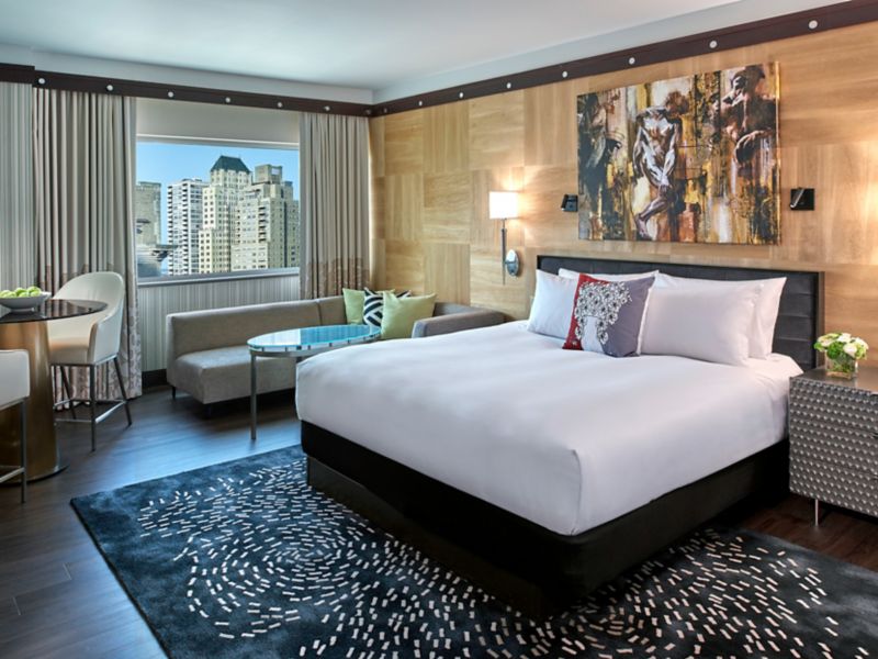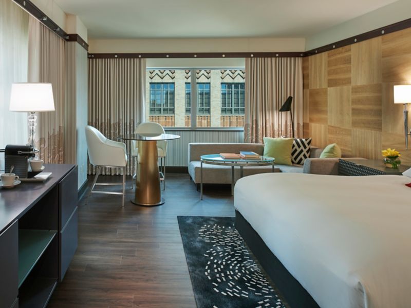 前卫的艺术装饰,精致时尚。典雅的现代家具,色调温暖。费城索菲特酒店将法式典雅与现代美式风格巧妙融合,打造时尚住宿体验。您可以入住高楼层客房,欣赏“兄弟友爱之城”的天际美景,也可以入住带起居室的温馨套房,尽情放松身心。
