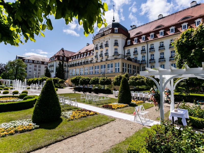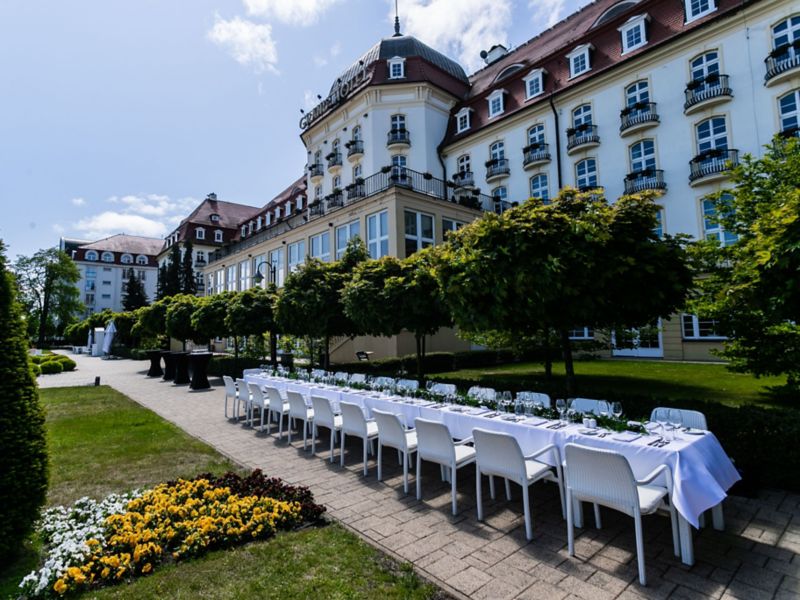 让我们来为您把控细节。在您组织特别活动时,细节至关重要。酒店设有五间格调典雅的会议室和一间宏伟宴会厅(我们皇冠上的宝石),可以满足您的各类需求。索波特索菲特大酒店宴会厅可容纳多达 250 位宾客,是您举办婚礼的理想场所。