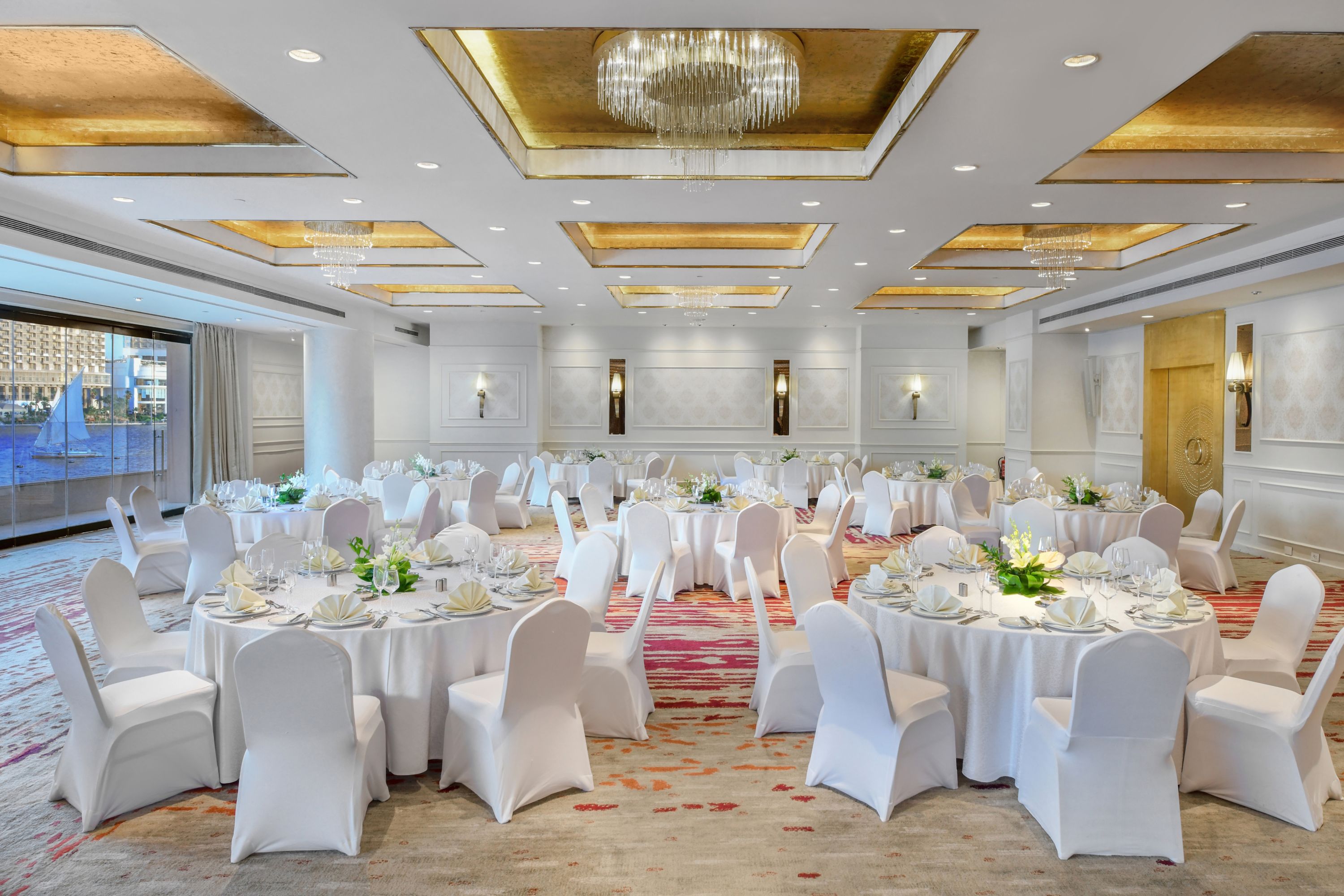 耀眼空间可容纳多达 550 位宾客,融合了埃及奢华和当代艺术。在星光璀璨的婚宴,宾客还可以在大理石露台上俯瞰尼罗河。