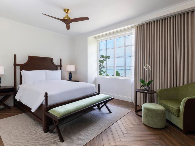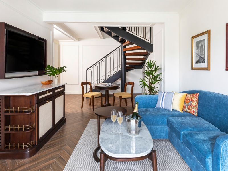 酒店客房和套房典雅宁静,设有经典的四柱床,配备智能高清电视、先进扬声器等奢华现代设施。在装饰手绘瓷砖的宽敞浴室内,让 Diptyque 浴室用品愉悦您的感官。大多数客房带阳台并可欣赏迷人海景。